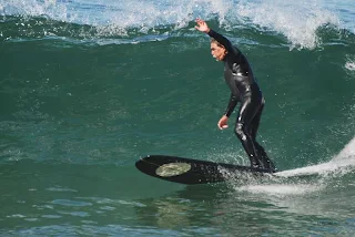 Even though it's too late for an early spring , it was mostly sunny this morning at checkout with 15 miles visibility and a bit of haze from here to the horizontal. Winds were slightly onshore and from the south by 2.3kts and the sea surface was smooth to slightly bumped. The air temperature was 56.0° and the water has bumped a degree a day from Monday to hit 57.2° this morning! Can this be a harbinger of something to come? Fog? High tide at 7:45am +4.7' and low tide will be at 2:12pm +0.1'. The buoy is reading a SW swell out of 215° at 4.9'. Hermosa was slapping the beach pretty hard while Topaz had some high tide shoulders at 3' to 5'. It wasn't exactly turning the corner to Sandyland, so you had to be patient and wait for the sets. Still a beautiful day...