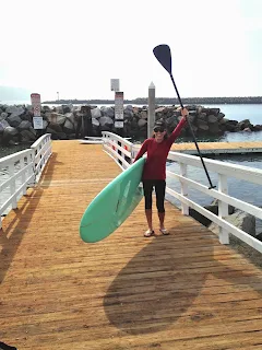 If you haven't had a chance to head out and see the humpback, blue or gray whales don't miss the chance to see them close-up here in the local waters. LoLa convinced the Professor to take his new Barahona SUP out to the KHYC mile marker and they saw two humpbacks put on a remarkable show. It was like watching a pair of school buses try to out-jump each other! For those who thought she had a harpoon, she offers her paddle for inspection...