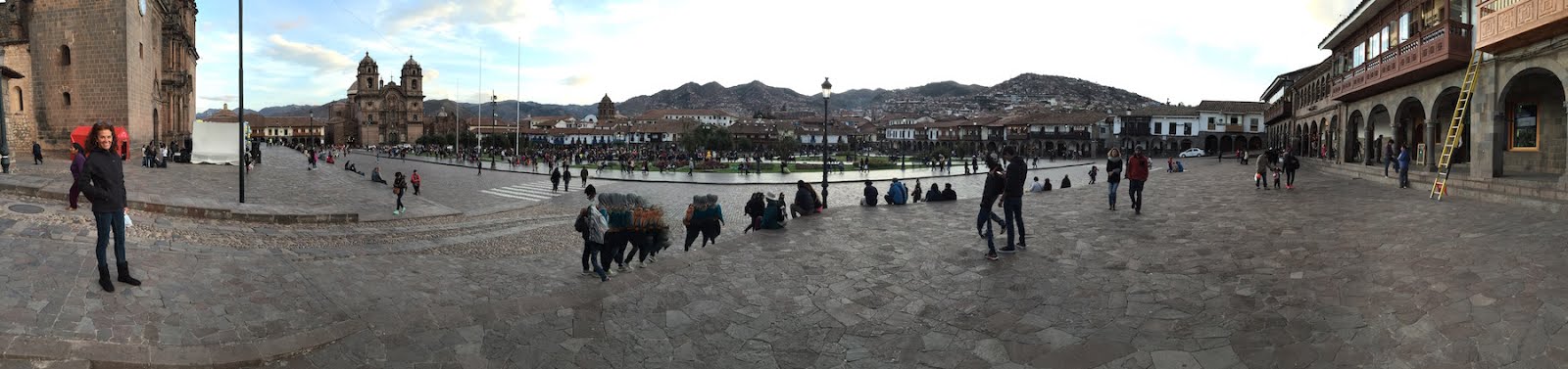 Great times in El Salvador like always, but there comes a time when you have to move on. Rather than head back north and home with the rest of the crew, a few of us decided that we had to make the trek further south. And this time it was Peru and the Inca Trail. Now if you think you can just fly into Cuzco and run up the hill to Machu Picchu, you've got another think coming. So we decided it would be prudent to spend a few days in Cuzco just to get acclimated. Cuzco is at 11,500 and that takes a bit of acclimatization... So we drank coca tea, slept in the first day and half of the second and finally on the second afternoon we ventured out. #1 is a panorama of LoLa on the Plaza de Armas, the main plaza (of several) in Cuzco. It turns out that we just happened to arrive on the feast day of St. Martin de Porres, who is one of the patrons of Cuzco. Quite a fiesta, with the entire town turning out in fine fashion...