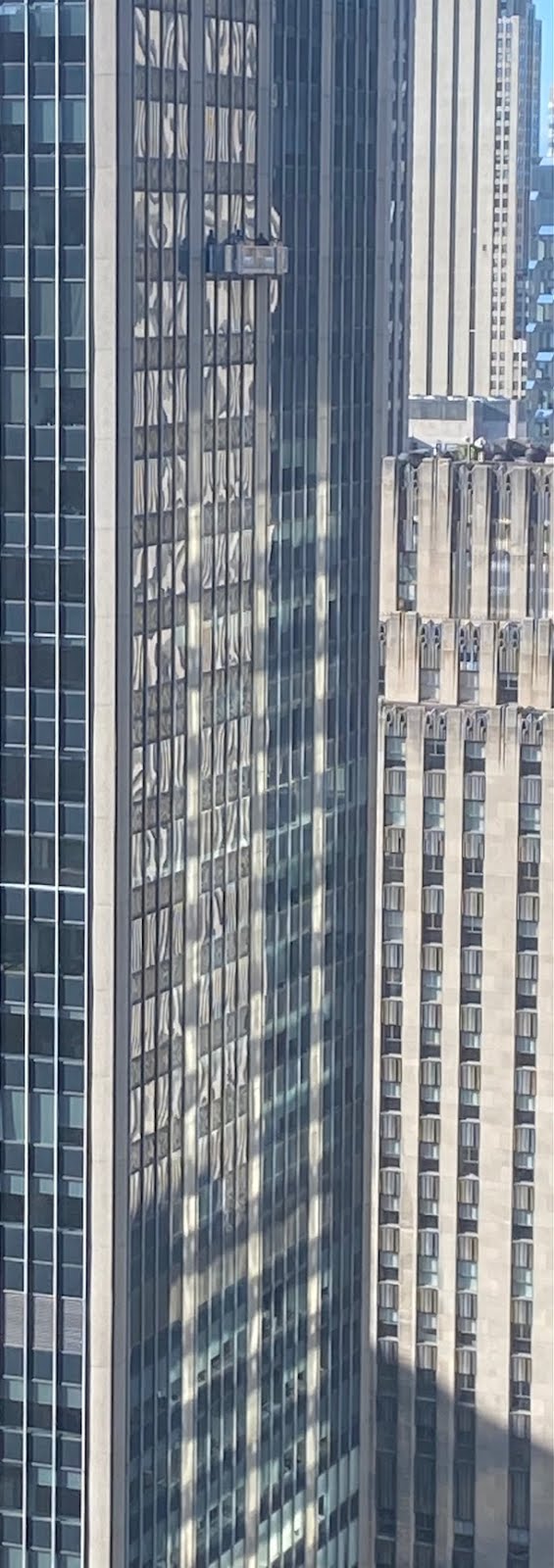Taking the big drop (about 45 floors), we watched these window washers (#1) high above 53rd St. in New York, plying their trade and trying hard not to look down... Just like taking off on a 400' wave, that's all...