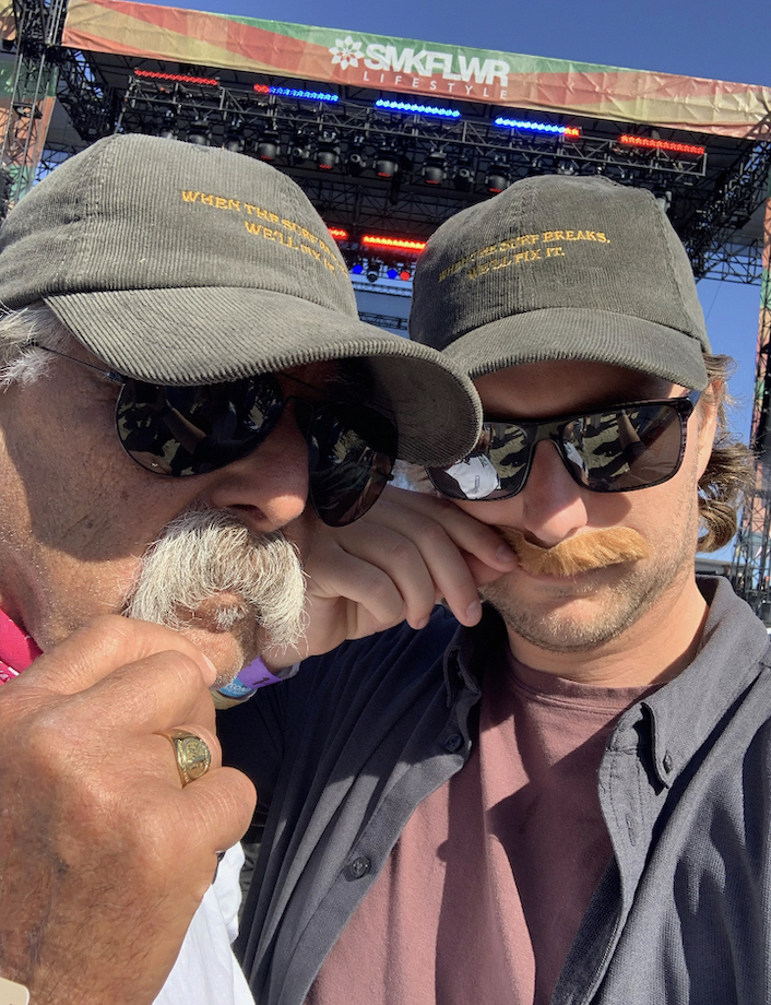 Mustaches were in profusion at the Donovan Frankenreiter show at the latest Beachfest. Here (#1) we have a couple of gents who fit right in...