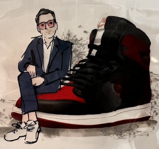 A shoe-in anywhere he goes, Jetski posed for this portrait (#2) with one of his favorite models.  We would've chosen the Adidas Italias, but that's us...
